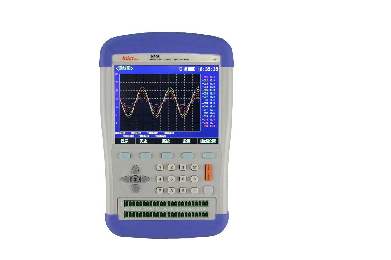 JK508手持式多路温度采集仪是在我们的技术平台上推出了最新款的手持温度曲线采集仪。采用高性能ARM微处理器控制和5.6寸液晶显示屏,让波形显示一目了然。并可同时对多路温度数据进行采集,上超下超报警和通讯传输,并可扩展到128多温度数据,兼容多种温度传感器,响应速度快,数据稳定,同时具备断偶检测功能。有高达6AH的锂电池供电,保证长时间的采集工作,并且免费提供专用的采集软件。